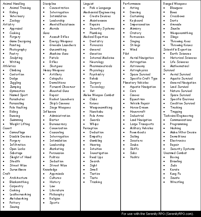 This game is all about playing a role. The best way to start a new character is to think of what type of character you want to be and then try to design around that. You can be a corn-ball pilot, a happy-go-lucky mechanic, an anal-retentive medic, a backwoods tough guy, etc. Once you have the type of person in mind, character creation goes much easier.